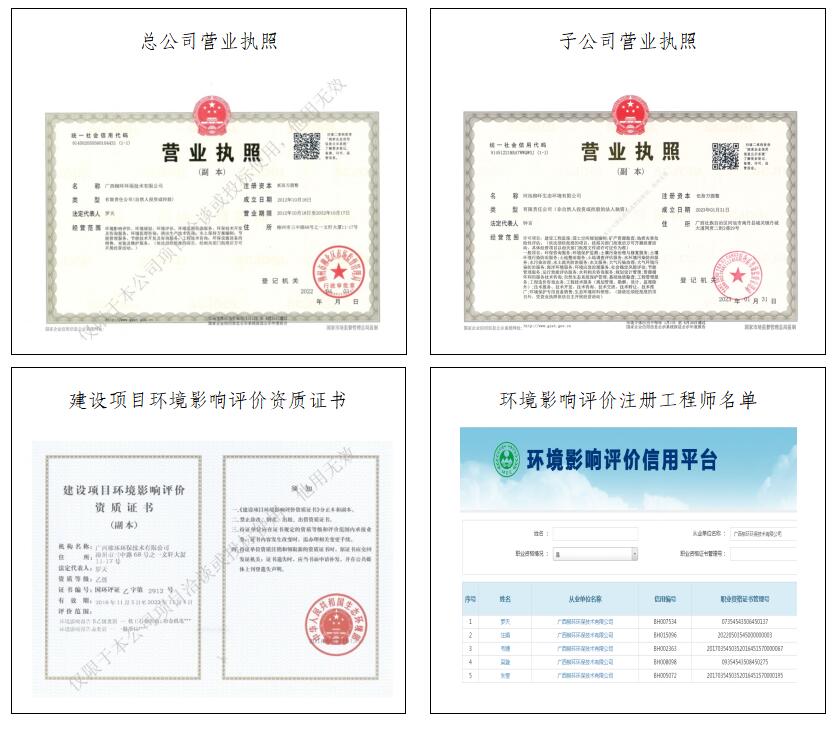 1、業(yè)務(wù)范圍:涵蓋環(huán)境影響評價(jià)、環(huán)境評估、環(huán)境規劃、生態(tài)規劃、環(huán)保技術(shù)開(kāi)發(fā)及咨詢(xún)服務(wù)、污染場(chǎng)地環(huán)境調查、建設項目竣工環(huán)保驗收、突發(fā)環(huán)境事件應急預案編制、排污許可申報、排污許可證核發(fā)技術(shù)審查服務(wù)、環(huán)境監理咨詢(xún)、環(huán)境保護工程設計與施工、環(huán)境治理與生態(tài)修復、環(huán)境監測咨詢(xún)服務(wù)、企業(yè)清潔生產(chǎn)技術(shù)咨詢(xún)、水土保持方案編制、項目可行性研究報告、項目資金申請、項目節能評估報告、節能管理服務(wù)、節能技術(shù)開(kāi)發(fā)及咨詢(xún)服務(wù)、工程技術(shù)咨詢(xún)、污染防治專(zhuān)項規劃編制,排污口論證、項目建議書(shū)、環(huán)保設施設備的銷(xiāo)售、安裝及維護服務(wù)、項目實(shí)施能效評價(jià)報告、企業(yè)能源審計報告、企業(yè)及園區循環(huán)經(jīng)濟方案等。目前,公司業(yè)務(wù)范圍覆蓋廣西壯族自治區所有地市。自2012年公司成立以來(lái),共承接并完成各類(lèi)大中小型建設項目、規劃環(huán)境影響評價(jià)報告書(shū)200多項.環(huán)境影響評價(jià)報告表600多項,建設項目環(huán)境保護竣工驗收、環(huán)保咨詢(xún)服務(wù)和其它咨詢(xún)服務(wù)200多項,環(huán)境保護工程設計與施工50多項,質(zhì)量且好效率高,多次獲得各級環(huán)保部門(mén)的表?yè)P和業(yè)主的肯定。